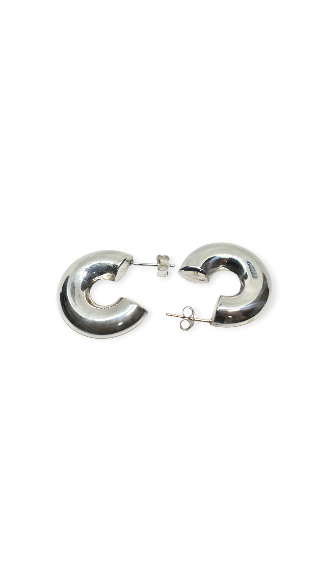 Pendiente en plata medio aro con un grosor de 6mm y un circunferencia de 30mm