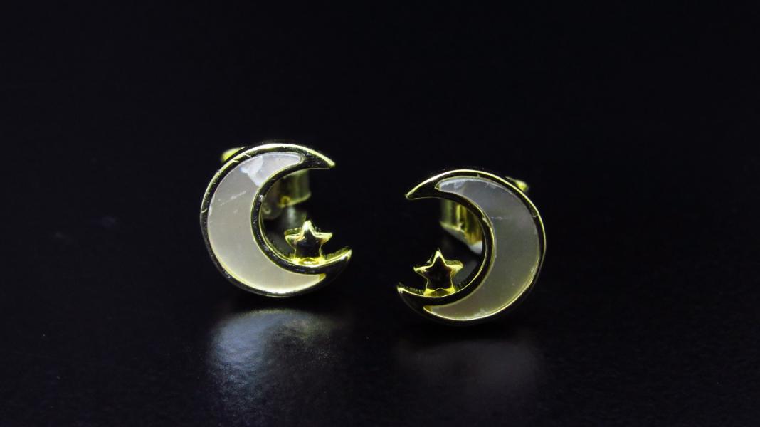 PENDIENTE LUNA Y NACAR CON UN BAÑO DE ORO AG