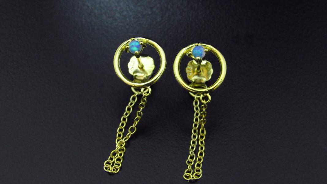 PENDIENTE OPALO CON CADENA Y UN BAÑO DE ORO AG